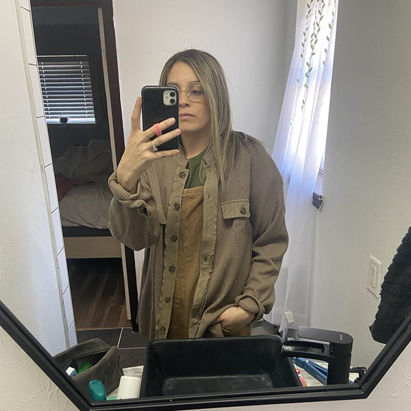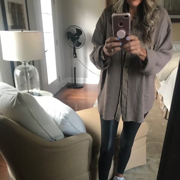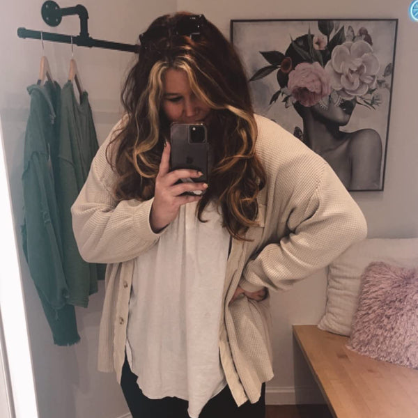 "Absolutely love this jacket! The waffle knit is so soft and cozy, and the oversized fit makes it perfect for layering!"