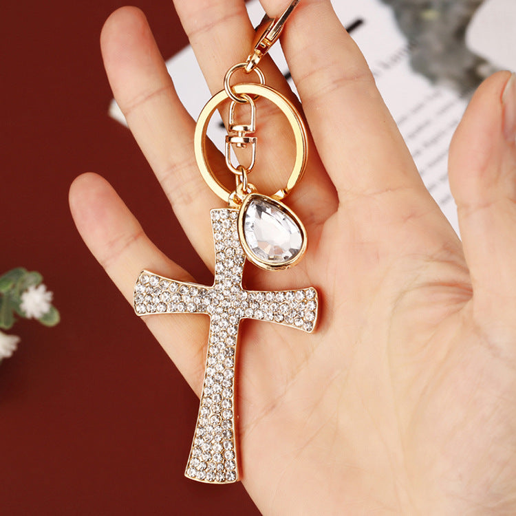 Shimmer Cross Keychain | Metal & Rhinestone Accessory
